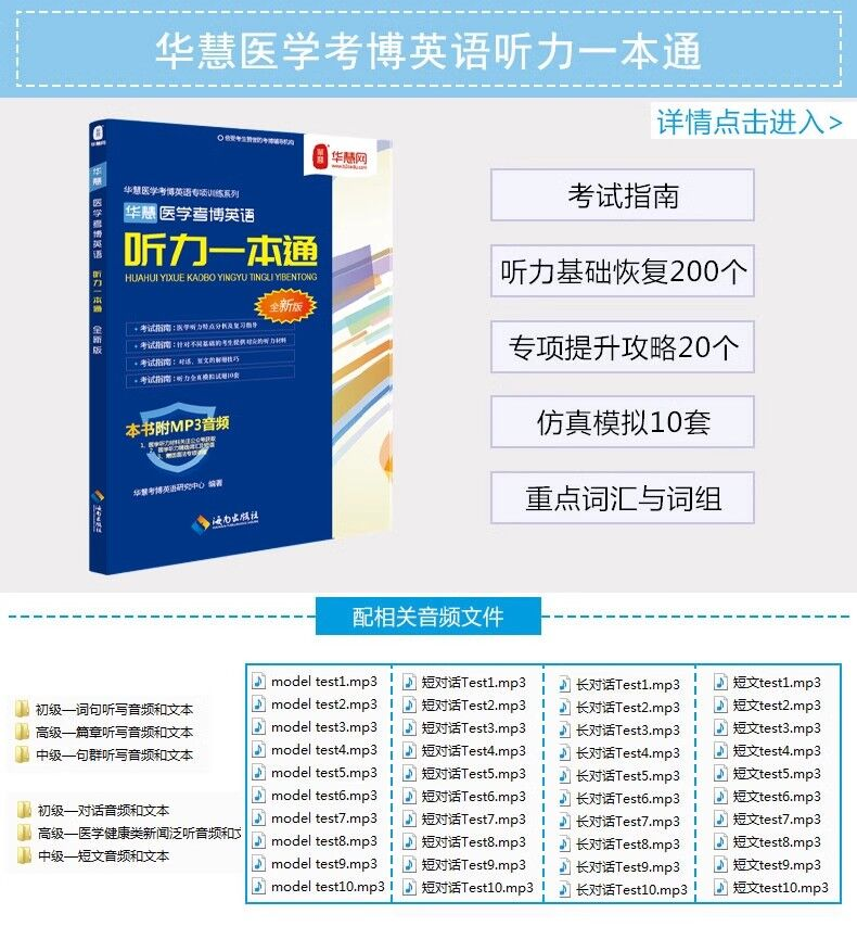 考博听力资料请点击链接了解:华慧医学考博英语听力一本通+医学考博英语真题集