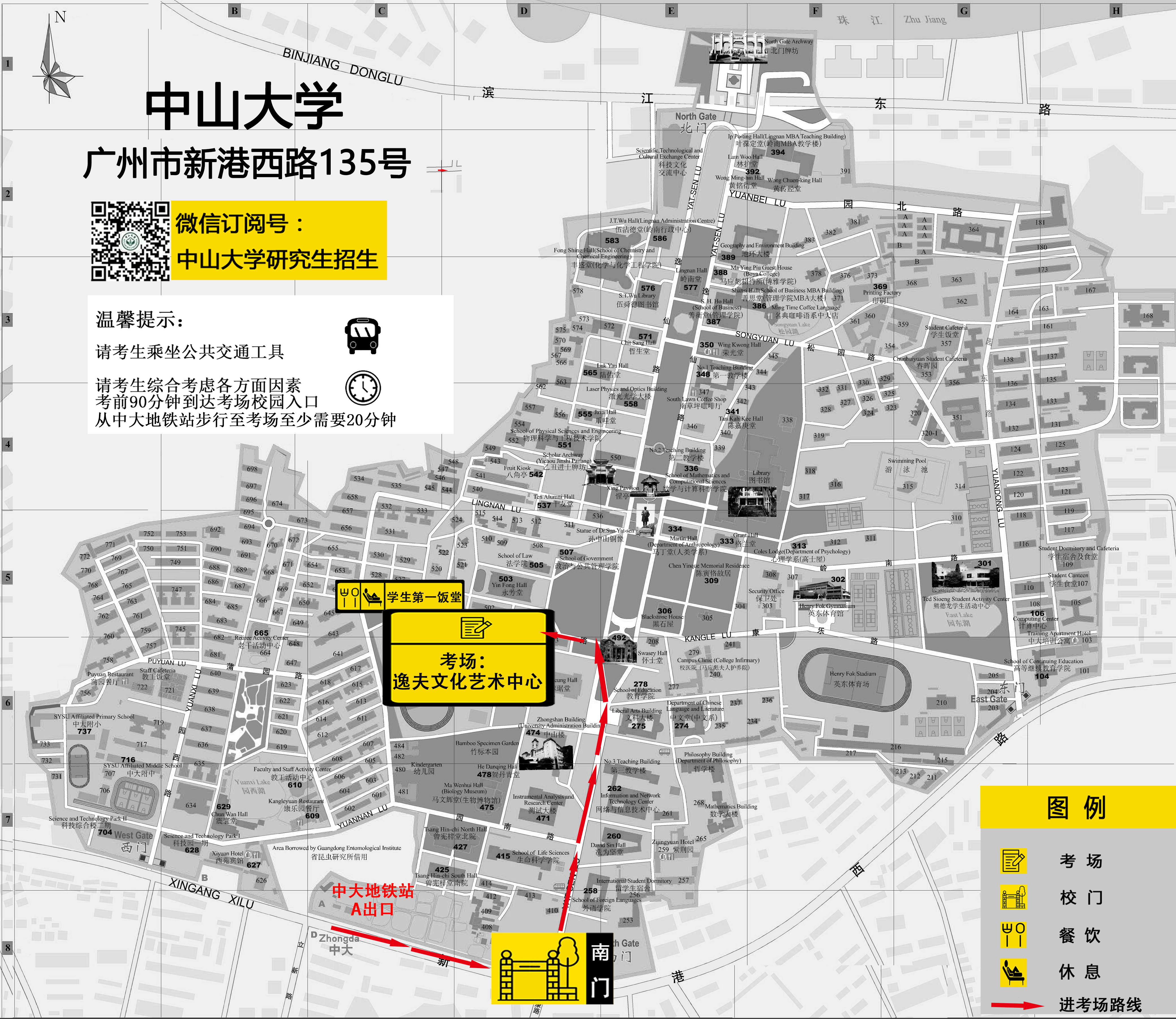 附件:中山大学广州校区南校园(广州市海珠区新港西路135号)考场位置图